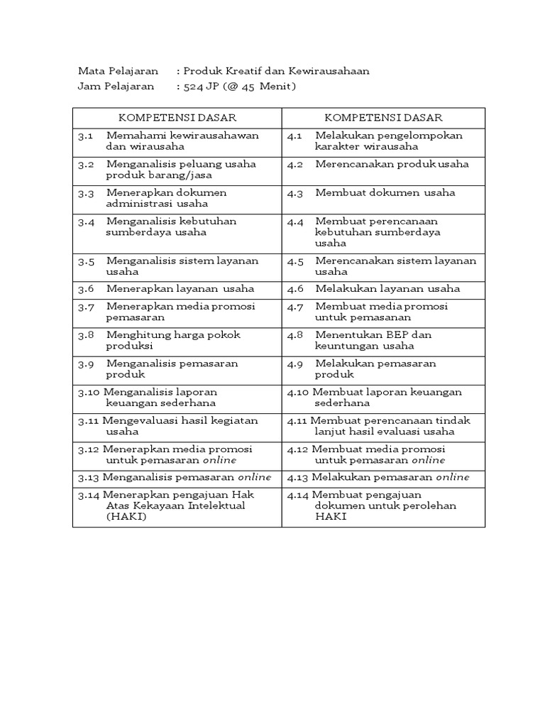 Download Rpp Mata Pelajaran Produk Kreatif Dan Kewirausahaan Smk