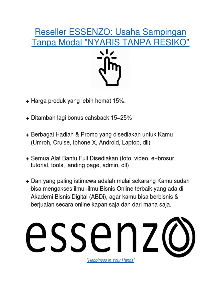 Reseller Essenzo Usaha Sampingan Tanpa Modal Nyaris Tanpa Resiko