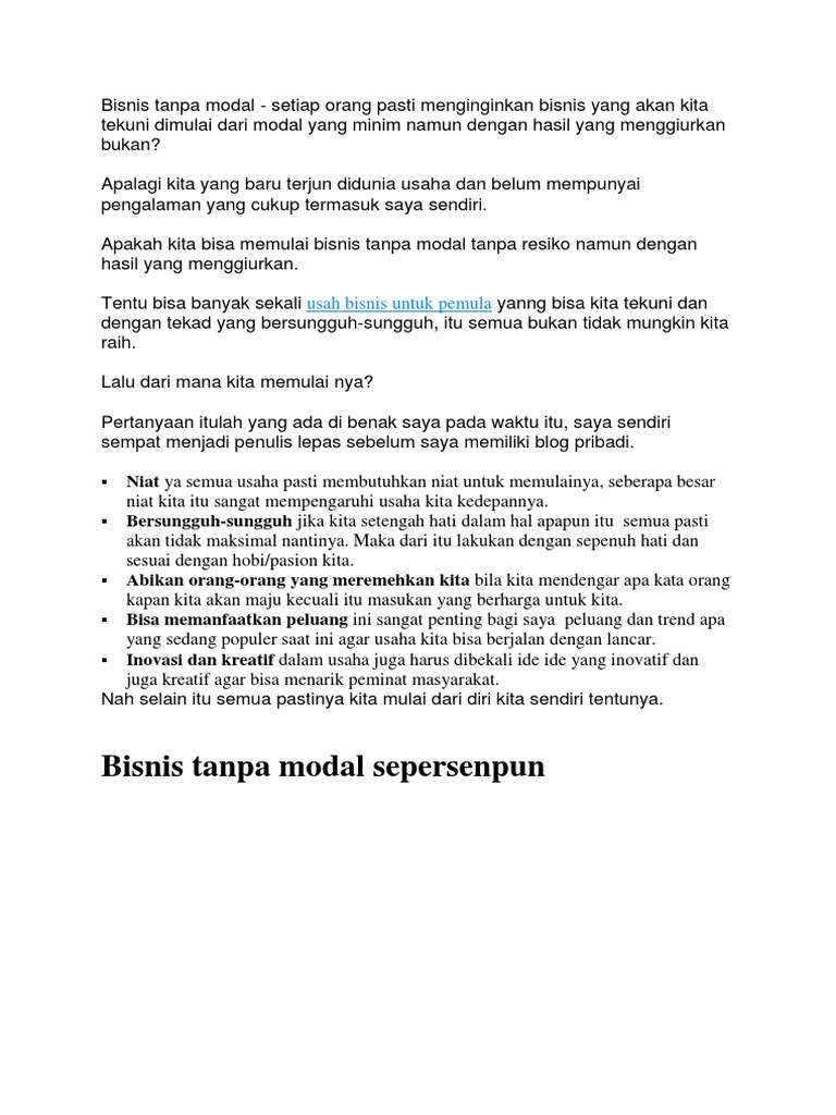 Bisnis Tanpa Modal Dan Resiko Added A Bisnis Tanpa Modal Dan