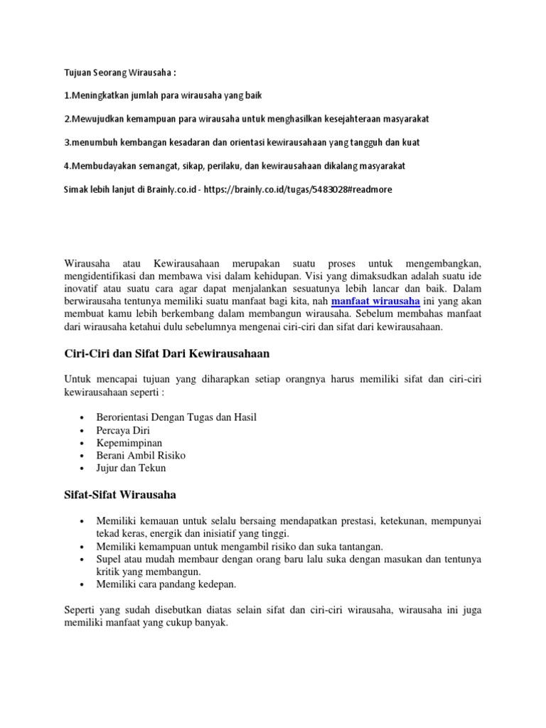 Karakteristik Kewirausahaan Pengertian Ciri Tujuan Manfaat
