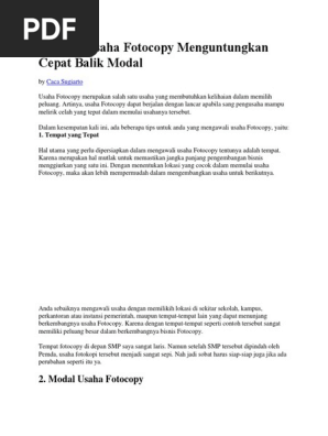 Analisa Modal Usaha Fotocopy Dan Alat Tulis Info Peluang Usaha