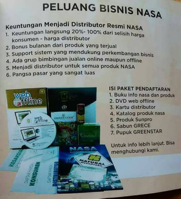0852 2426 2000 outlet belanja online produk nasa. Bisnis nasa menjadi peluang usaha paling tepat saat masa pendemi. Atau anda berkata padahal dah dari dulu tuh aku saya tahu peluang usaha itu.