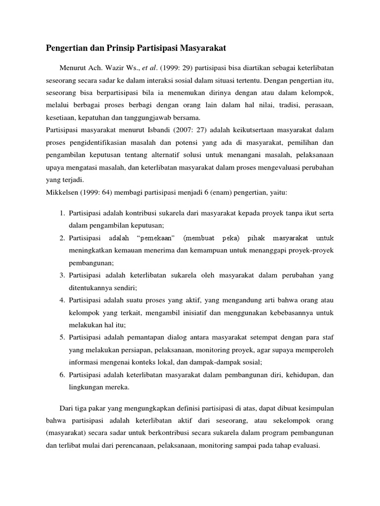 Pengertian Dan Prinsip Partisipasi Masyarakat