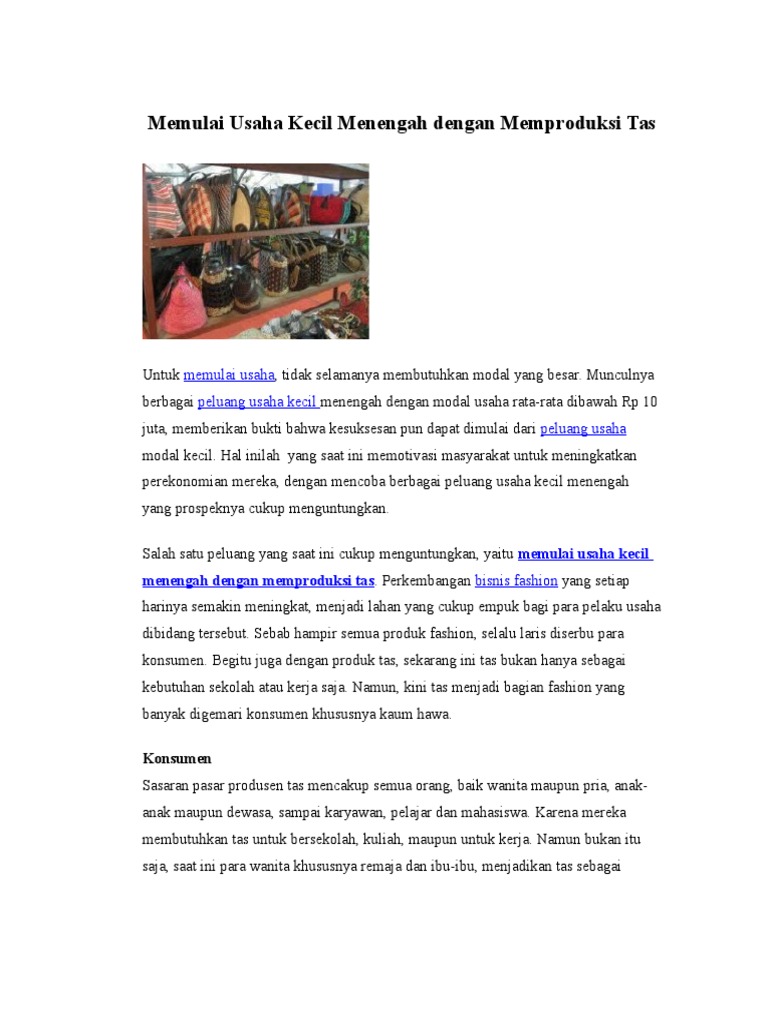 Memulai Usaha Kecil Menengah Dengan Memproduksi Tas Edit
