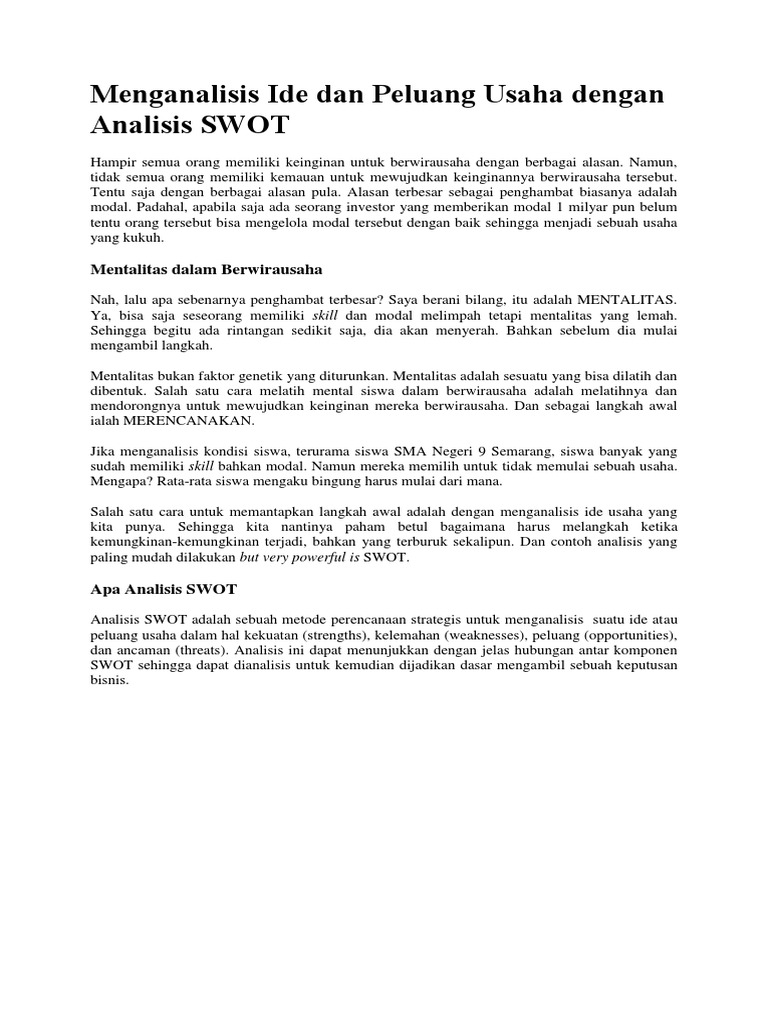 Menganalisis Ide Dan Peluang Usaha Dengan Analisis Swot