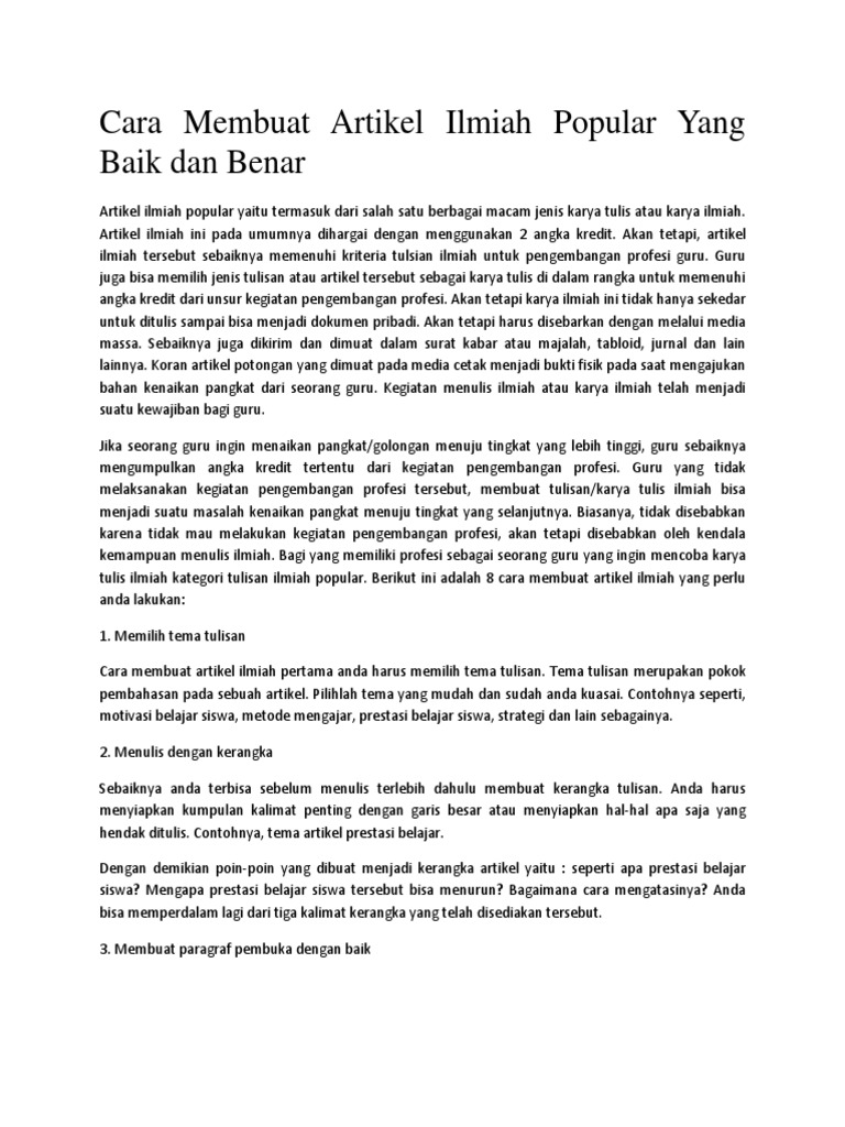 Cara Membuat Artikel Ilmiah Popular Yang Baik Dan Benar