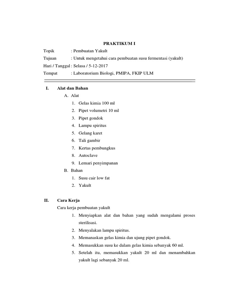 Laporan Praktikum Pembuatan Yoghurt Secara Fermentasi
