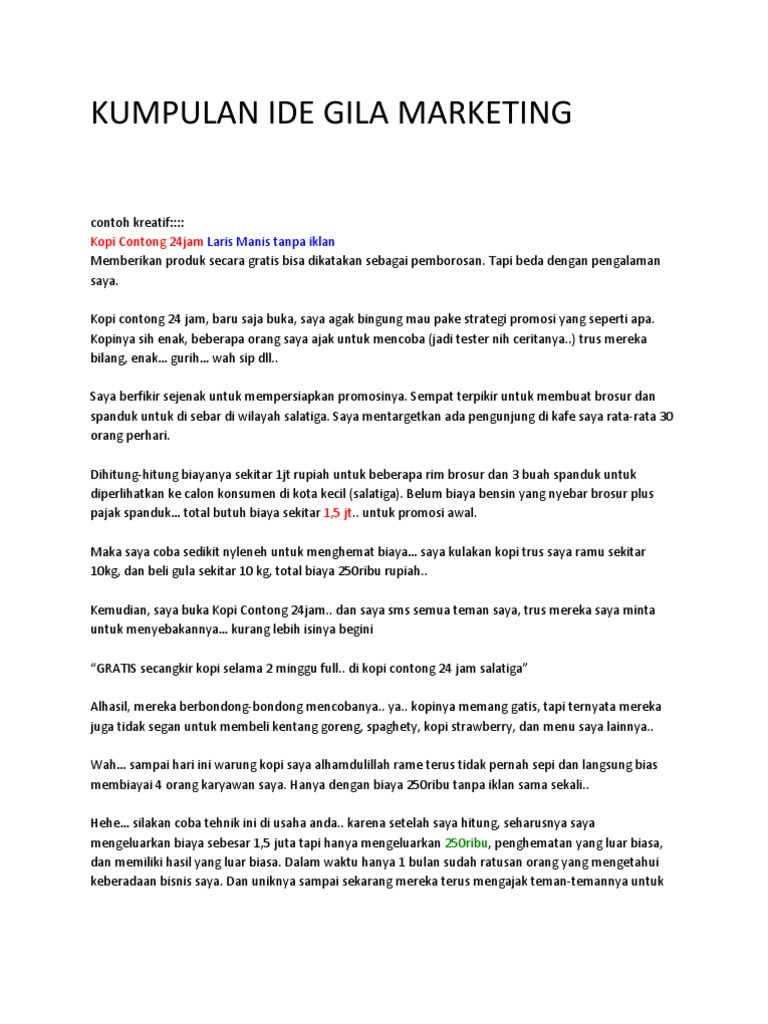 10 ide bisnis gila yang membuat penggagasnya menjadi milyuner kreatifitas seseorang dalam menjalankan bisnis memang tak ada batasnya. Itu kesepuluh ide gila untuk promosi produk. 30 ide bisnis kreatif untuk anda lakukan di 2021.