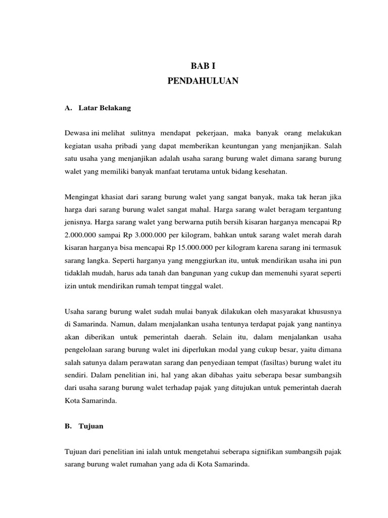 Tetapi semua itu merupakan wujud akumulasi dari usaha dan bantuan pertolongan serta doa dari berbagai pihak yang telah membantu. Penelitian ini bertujuan untuk menguraikan kelebihan dan kekurangan dari usaha sarang burung walet dikelurahan angsau kabupaten tanah laut. Panduan lengkap cara budidaya ternak burung walet rumahan bagi pemula agar sukses.
