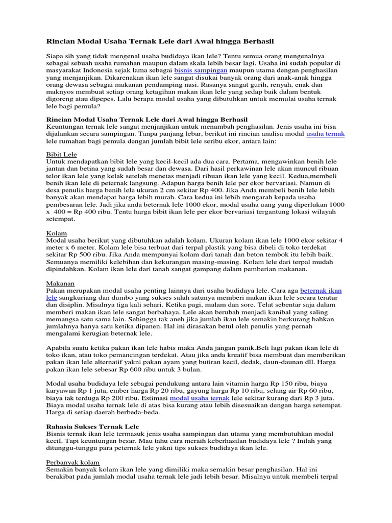 6 cara memulai peluang usaha ternak lele. Estimasi modal usaha ternak lele sekitar kurang dari rp 3 juta. Karena dianggap mudah murah dan menguntungkan usaha ini menjamur masyarakat seiring permintaan kebutuhan akan ikan lele meningkat untuk menyuplai warung makan warung tenda kaki.